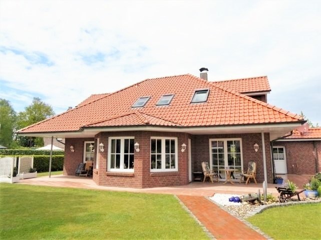 Op een gewilde locatie binnen de bebouwde zone –op korte afstand van de dagelijkse voorzieningen- bevindt zich deze royale luxueuze vrijstaande woning in het gemoedelijke plattelandsdorp Rhauderfehn, welke is gelegen, te midden van een attractief coulissenlandschap op de grens van het zuidelijke Ostfriesland en het eveneens bosrijke Emsland. Kavelgrootte maar liefst ca. 1000 m2. Bouwjaar 2008, waarna top onderhouden. Het woongedeelte is voorzien van kunststofkozijnen met chique roedes en isolerende beglazing en grotendeels elektrisch bedienbare rolluiken. Het binnenklimaat wordt geregeld door een geavanceerd ventilatiesysteem. Alhoewel ook volledig gelijkvloers wonen zonder meer mogelijk is, is de totale indeling van de woning geschikt voor iedere leeftijdscategorie en gezinssamenstelling. Het ruime perceel met keurige onderhoudsarme tuinaanleg is op het zuiden gericht en kan er van de zon worden genoten vanaf 2 overdekte terrassen. Een blokhut fungeert hoofdzakelijk als berging voor tuinmeubilair, tuingereedschap, enz. Een zeer comfortabel, om zo zonder meer te betrekken.
