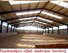 Referentienr. IM-1407006. !!! Grootschalige paardenhouders opgelet !!! Paardenobject o.a. professionele rijhal 20 x 40 m, herenboerderij. ca. 30 paarden- en ponyboxen, landerijen, 2 x buitenrijplaats, longeercirkel, kantine, toilet- en wasgelegenheid, zadelkamer enz. Puur landelijke omgeving, vrij gelegen, gunstig gelegen aan uitvalswegen richting NL grens.