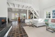 De salon is aan de tuinkant van de woning en heeft een open haard voor de gezeligheid met openslaande deuren naar de tuin. Vanaf uw bankstel heeft u niet alleen contact met de tuin, maar kijkt u eveneens tot in de nok van het dak via de vide.