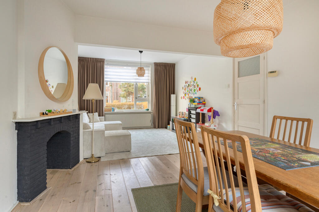Een lichte en gezellige woonkamer van ca. 30 m² met openslaande deuren naar de tuin. De schouw geeft dit deel van het huis extra karakter. Door de directe verbinding met buiten voelt het binnen- en buitenleven naadloos op elkaar aansluiten.
