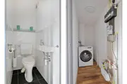Via de hal, met garderoberuimte, toiletruimte en trapopgang, kom je binnen in de woning. Hier bevindt zich ook een praktische berging met meterkast en wasmachineaansluiting.