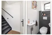 De hal beschikt over de meterkast, een garderobe en een toiletruimte met wandcloset en fonteintje. Een tuingerichte woon- en eetkamer, voorzien van een trapkast en openslaande deuren naar de zonnige achtertuin.