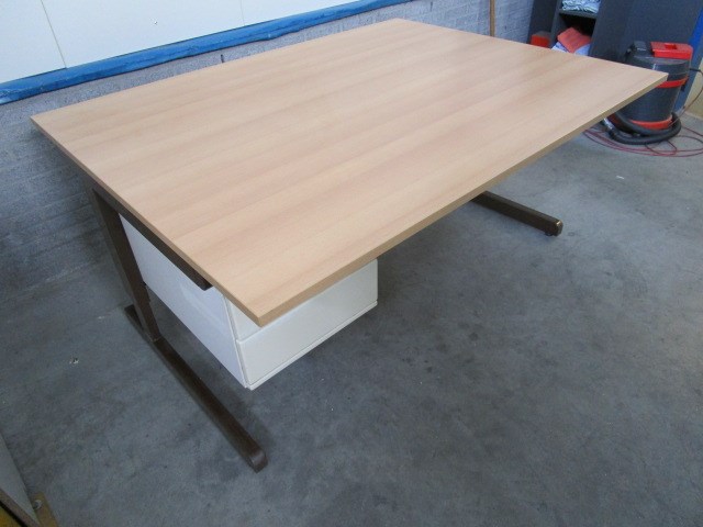 Werktafel met extra diep blad van 120cm., inclusief 1x hangend 2-ladeblok wit kunststof,