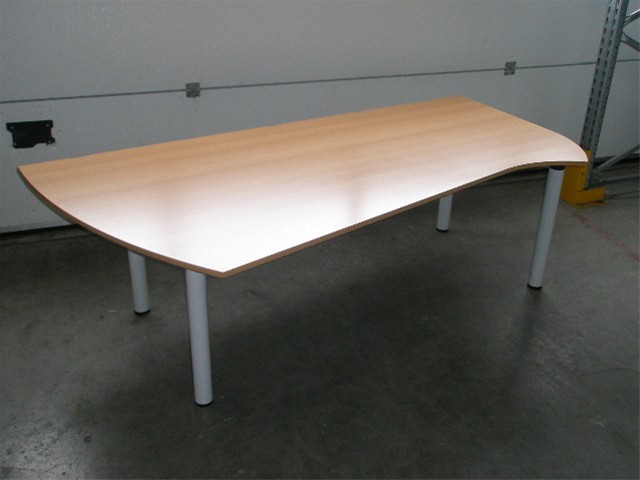 Bureautafel Vepa Wave, blad: beuken, 4-poot rond hoogte instelbaar frame: l.grijs