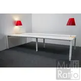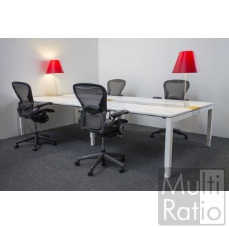 Een zeer fraaie opstelling, voorzien van "zwevende bladen", 2 Costanza bureaulampen en kabelgoten bereikbaar via aluminium kleppen.