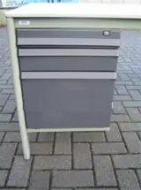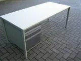 Bureau Ahrend, blad: lichtgrijs, frame: lichtgroen, incl. vast 2-ladeblok (1x hangmaplade met 2x A4 bak, 1x lage lade A6), zonder sleutel