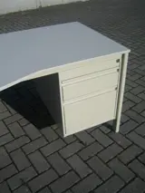 Beeldschermbureau Drentea Mega (nieuw type), linkse of rechtse uitvoering, vaste hoogte 75cm., poten en blad: parel, incl. rechts ladeblok met 3 laden met kunststof front, zonder sleutel, parel
