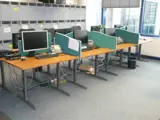 Callcenter werkplek SET bestaande uit 8x bureaus met 10x scheidingswanden.