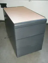 INCLUSIEF verrijdbaar 2-ladenblok(1x A6 lage lade, pennenlade, 1x hangmaplade met 2 A4 bakken) kleur: ombouw blauw, topblad beuken, kunststof front: antraciet, kabeldoorvoergaten
