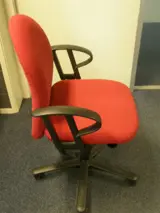 Bureaustoel, stof: rood, frame: zwart, neigmechaniek met vaste standen, gewichtinstelling, hoogte instelbare zitting, rug en armleggers, vzv. zwart kunststof voetkruis, tapijtwielen