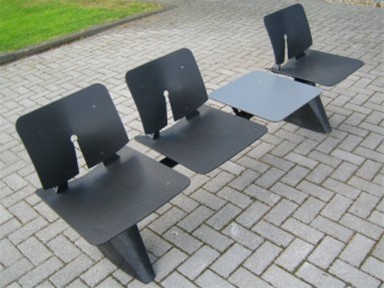 Zitelement 3-zits Artifort, zitting en rug: zwart kunststof, driehoekige poten: zwart kunststof, tafel: antraciet, indeling zitting en tafel is te wijzigen