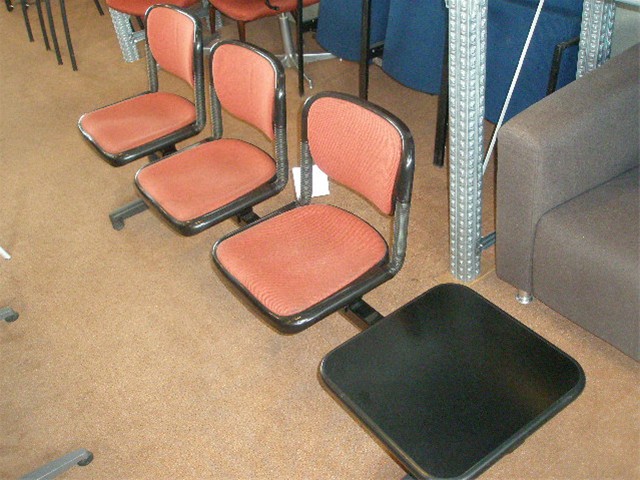 Ontvangst- wachtkamerbank Castelli, 3-zits en tafeltje, schuifzitting en kantelbare rug, stofkleur: roestbruin, kleur frame+blad: zwart