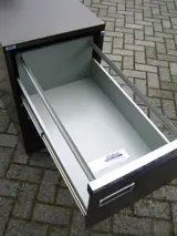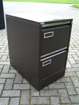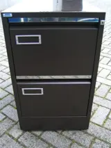 Hangmap ladenkast 2-ladig, ombouw: donkerbruin met verchroomde accenten, vzv. 2 hangmappenladen geschikt voor A4 en/of Folio formaat, vzv. naambordjes, 1 sleutel