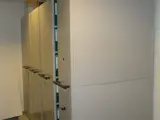 2x dubbele verrijdbare wagens afm. H215xB100xD80cm., 1x enkele verrijdbare wagen afm. H215xB100xD40cm., 1x vaste wagen afm. H215xB100xD40cm., gangpad tot B130cm.
