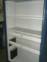 Ombouw en stalen lamellen: blauw (overgespoten), interieur: lichtgrijs, zonder sleutel, met 4 uittrekbare frames waar u zelf legborden in kan maken