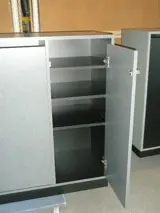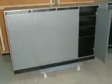 Draaideurkast 4- deurs, ombouw en deuren: antraciet, interieur: zwart, 4 vakken elk met postvak en 2 planken, afm. per vak: H96xB37,5xD41cm., elke deur incl. slot met sleutel