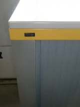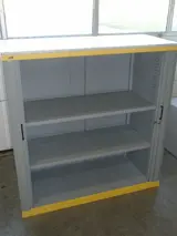 Roldeurkast Brink afm. H135xB130xD54cm., ombouw en lamellen: grijs met gele accenten, zonder sleutel, incl. 2 legborden, -zware kwaliteit-