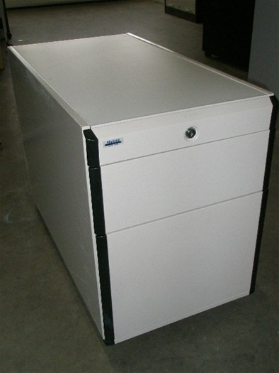 Verrijdbaar ladeblok Gispen, ombouw en laden: lichtgrijs, topblad: grijs, vzv. 1x lage lade A6 en 1x hangmappenlade met 1 inzetbak A4, zonder sleutel