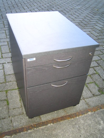 Verrijdbaar 2- ladeblok, houten ombouw: antraciet, metalen handgrepen: zilvergrijs, vzv. 1x hangmaplade A4 en 1x lage lade A6, pennenlade, zonder sleutel