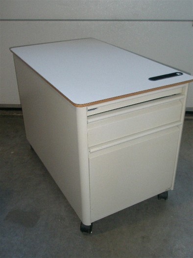 Verrijdbaar ladeblok Zettoe, beige, topblad: multiplex grijs, vzv. 1x lage lade A6, 1x hangmaplade A4/Folio, 1x pennenlade, zonder sleutel