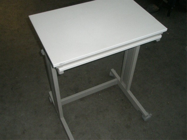 Computertafel, blad: lichtgrijs, frame: grijs, vzv. uitschuifblad voor toetsenbord, verrijdbaar met wielblokkering, hoogte instelbaar 3 standen van H65 t/m H75cm.