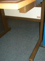 Bureautafel Ahrend, blad: kersen, frame: bruin, vzv. beige frontpaneel, poten met stelvoetjes