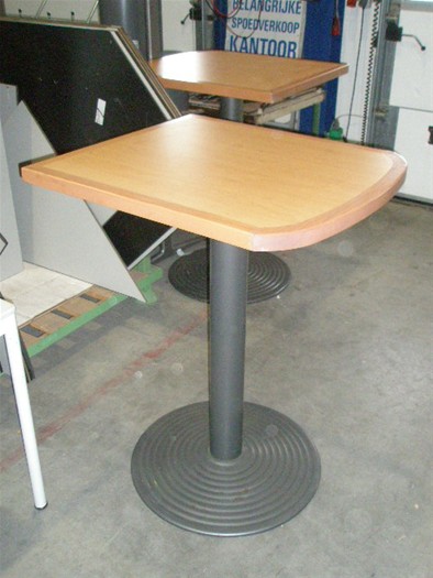 Statafel, blad 30mm.: kersen, metalen Ø67cm. trompetvoet: antraciet