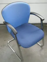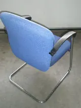 Conferentiestoel, stof rug: lichtblauw, stof zitting: donkerblauw, verchroomd sledeframe, met zwart kunststof armleggers