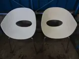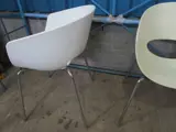1x SET van 2 stuks kuipstoelen, kleur: 1x wit kunststof / 1x creme kunststof, 4-poots verchroomd frame, met kunststof glijdoppen
