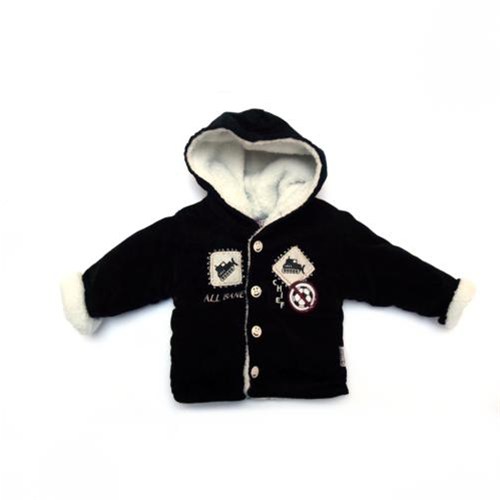 In zwart babyrib gevoerde jas en broek beide in zeer goede staat, net als alle kleertjes op onze site!