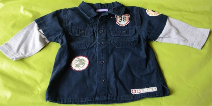 Nieuw donkerblauwe blouse met grijze ondermouw.