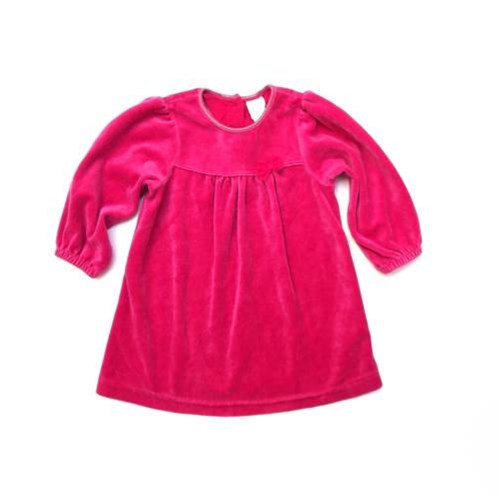 Mooi roze velours feestjurk met strikje met lange mouwen. Gedragen maar nog in prima staat, nu te bestellen in onze webshop.