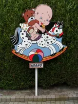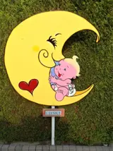 De laatste trends, indien gewenst: kan het ooievaarsnest op paal met bordje landingsplaats een of twee weken voor de geboorte van de baby geplaatst worden.{ zie foto 3 }