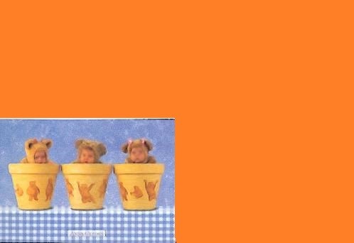 -Thema bloemen: 3 baby's in groene emmertjes met elk 3 gele roosjes op het hoofd nr. A212 (deze is onbeschreven).