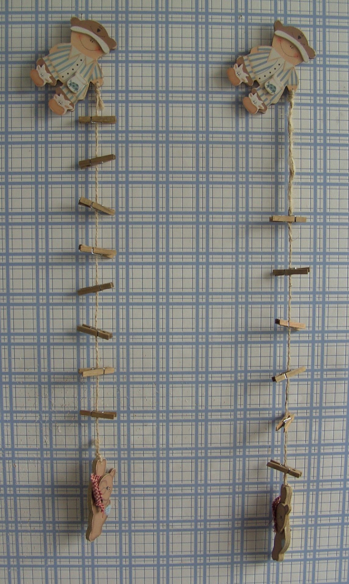 Leuke houten Baby en Hond met koordje ertussen met knijpers.
