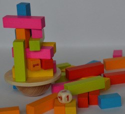 Bouw de toren tot die omvalt . Kinderen boven 5 jaar