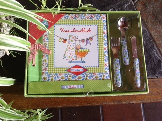 PAULINE kraambezoek boek inclusief bestek, NIEUW in doos