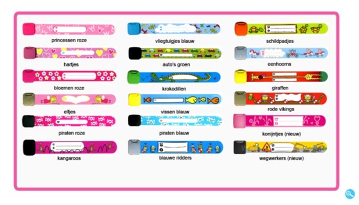 SOS polsbandjes voor kinderen en sos armbandjes gemakkelijk online bestellen! Met een gerust gevoel een dagje winkelen, naar de dierentuin of een ander uitstapje? Vergeet dan geen sos armbandjes of SOS polsbandjes voor uw kinderen. Door de leuke designs van onze unieke sos bandjes en polsbandjes voor kinderen, vindt zelfs de meest eigenwijze peuter het leuk om de sos bandjes te dragen. Bij weethoeikheet.nl zijn de sos bandjes en polsbandjes voor uw kinderen in zeer veel designs verkrijgbaar. Er zijn zelfs SOS polsbandjes voor kinderen en sos bandjes met stoerdere afbeeldingen voor de grotere kinderen.