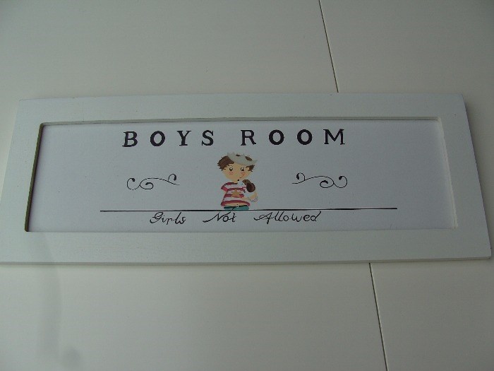 Leuke houten wandversiering met tekst BOYS ROOM, Girls not allowed.