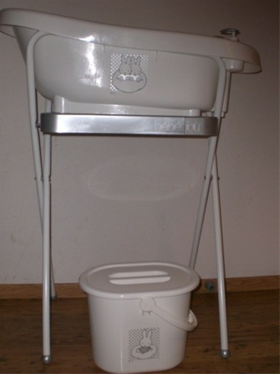 In het badje zitten zwitsal pompjes voor zeep en shampoo en er zit een thermometer in het badje. Er zit ook een luieremmer van nijntje bij. Alles ziet er nog perfect uit.