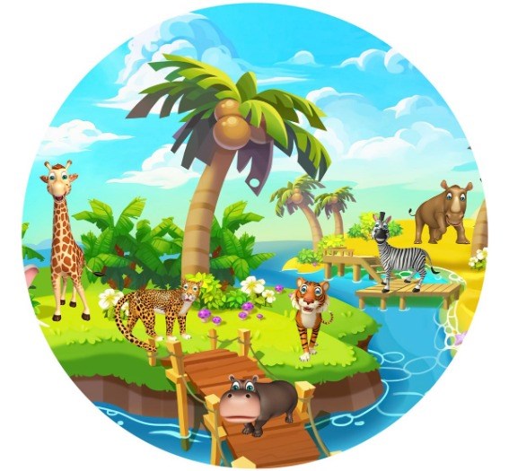 De Behangcirkel Jungle Safari is leverbaar in 3 maten en wordt gedrukt op: