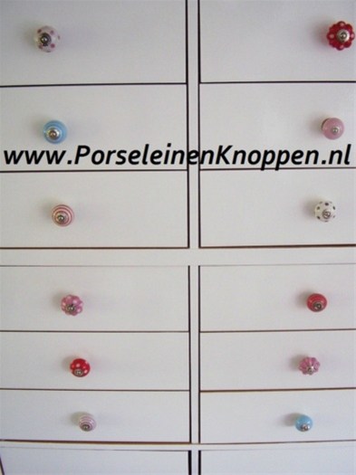 Het grootste assortiment porseleinen kastknoppen binnen de Benelux en keuze uit diverse soorten maten, vormen en kleuren.