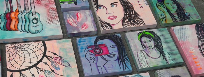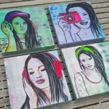 Leuke stoere kinderschilderijen voor de jongere en wat oudere kinderen! Ook erg geschikt voor de tienerkamer! Ik heb allerlei onderwerpen geschilderd die kinderen aanspreken. Voor de achtergrond heb ik streetart terug laten komen.