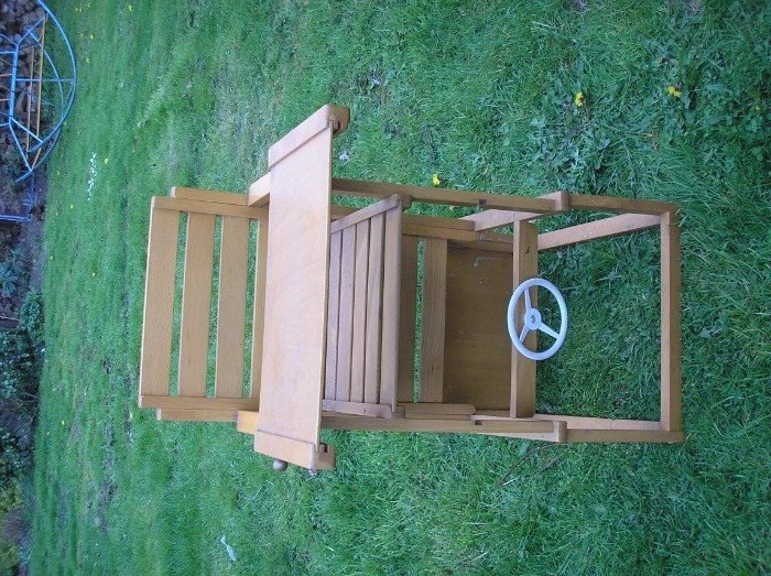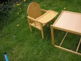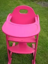 Kinderstoel- 2 delig , 12,50- Hout , roze 10,-- hout , tot auto om te bouwen, 13,50- -------------ook aanwezig, ledikantje, wipstoel, boxkleed. Div baby- speelgoed