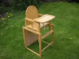 Kinderstoel- 12,50 per stuk- Hou, t rose - hout , tot auto om te bouwen, -------------ook aanwezig, ledikantje, wipstoel, boxkleed. Div baby- speelgoed