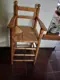 kinderstoeltje, hoog., rieten zitting, oud- Handige stoel voor bij de eettafel.- zthoogte 60 cm.- i.p.st.-25,-