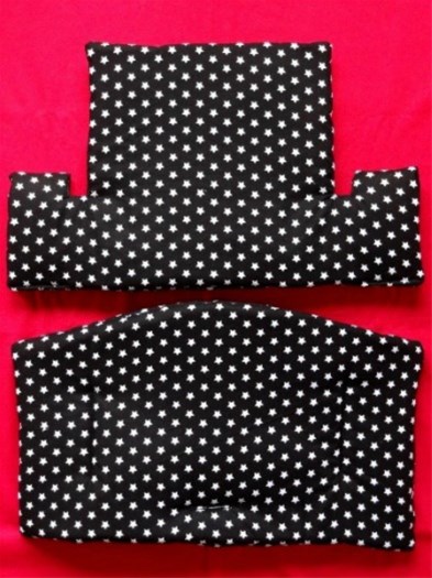 Vulling zitting: 3 lagen wattine/fiberfill, in totaal 4 cm dik; comfortabel voor de baby! Dikker dan de originele zittingen van Stokke Tripp Trapp!!