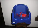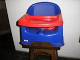 Stoelverhoger - afneembaar tafelblad - met ruimte voor drinkbeker / fles - geheel afwasbaar - met tuigje om het kindje vast te zetten - erg handig en gemakkelijk mee te nemen - i.p.st. 12,-