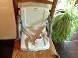 - foto 3 , Stoelverhoger - kunststof, degelijke uitvoering - geheel afwasbaar - gemakkelijk te bevestigen op een grote stoel, waardoor het kindje veilig kan zitten - gemakkelijk om mee te nemen - 6,-