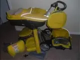Een chassis, een stoel, en een textiel set.